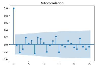 이번에는 lags의 값을 25로 변경해봤습니다. 결과를 확인해보면 아래와 같은 결과가 나옵니다.