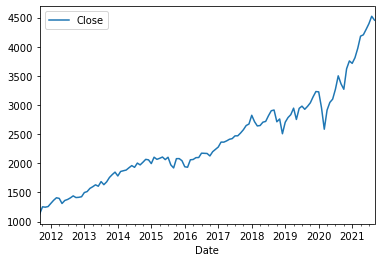 아래와 같은 모습으로 되어있습니다. 이 때, 일별 데이터가 아닌 월별데이터가 얻고 싶을때 resample을 사용할 수 있습니다.